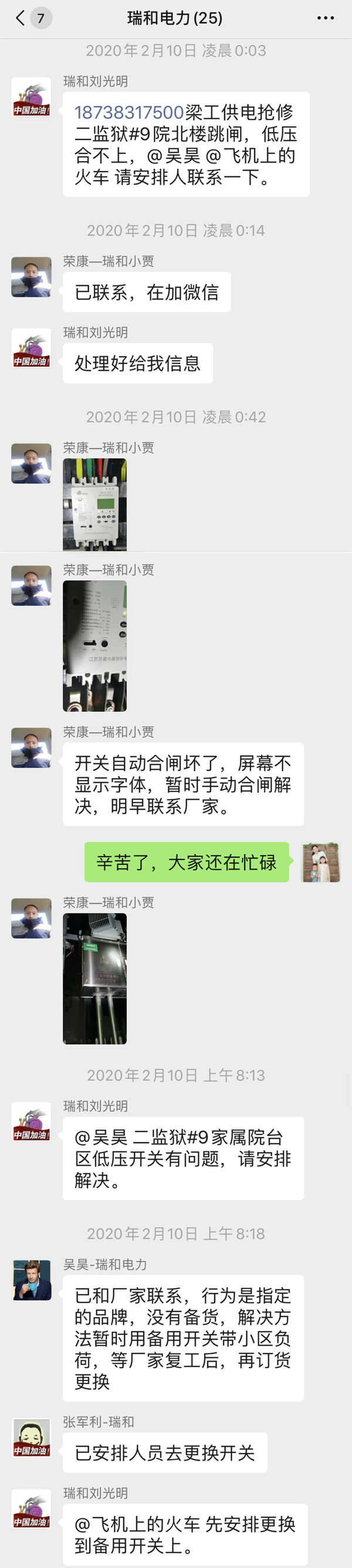 2月10日凌晨00:03,公司接到業(yè)主故障報(bào)修,“供電應(yīng)急小組”迅速作出回復(fù),并派技術(shù)工程師及時(shí)趕赴現(xiàn)場(chǎng),進(jìn)行事故處理,并于第二日迅速聯(lián)系廠家,快速更換零配件,保證了業(yè)主的正常供電。
